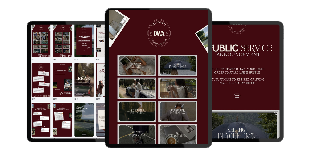 Digital Wealth Academy is your complete digital marketing course, designed for beginners who want to build real income online. You’ll learn everything from creating digital products to affiliate marketing, content creation, building automated sales systems, & so much more! Plus, become an affiliate for the fastest growing course and make 85% profits!